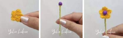 Fil : YarnArt Jeans : gris, blanc (pour le chat) et jaune, vert (pour la fleur)