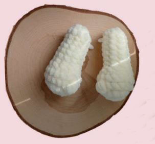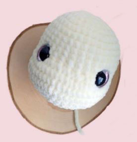 Plier la pièce en deux, crocheter 10 ms. Coudre le nez après avoir fixé la tête, sur les augmentations, entre les yeux.