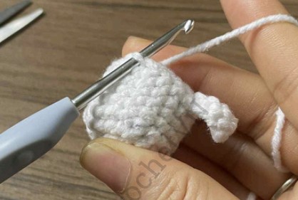 Tour 7 : mc, (2 ms, 2 mc) répéter 5 fois, 2 ms, mc