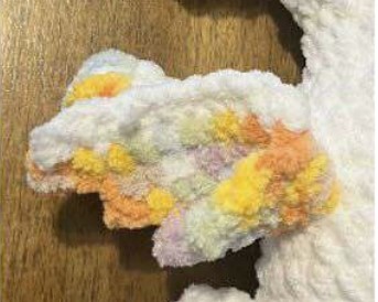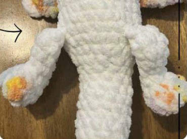 Crocheter des ms jusqu’à ce que la maille soit sur le côté de la jambe, fermer avec 4 mc.