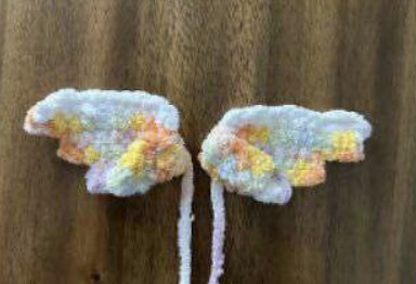 Avant de continuer le corps, il faut préparer les ailes en passant votre aiguille par le bas et le haut de la partie blanche de l’aile.
