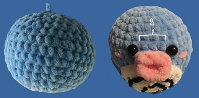 1) Tout d’abord, coudre le ventre à environ 1 point sous les yeux