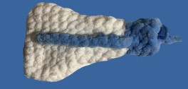 R1: ml 9 et à partir de la 2ème chaîne ms x 8 puis à partir du bas de la chaîne ms x 8 (16)