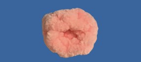 4) Coudre la queue sur le dos de la peluche, en l’alignant avec la bouche, sur la 12e rangée