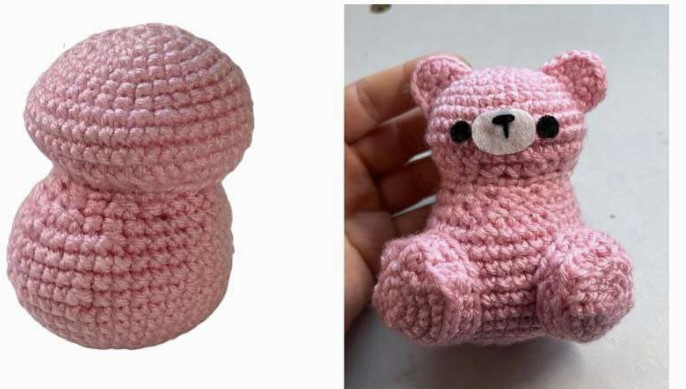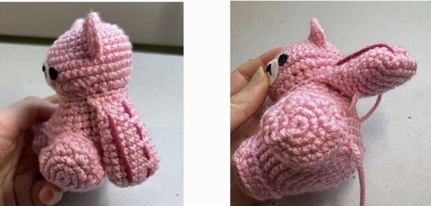 Oreilles: coudre les oreilles en commençant entre les tours 3-4.