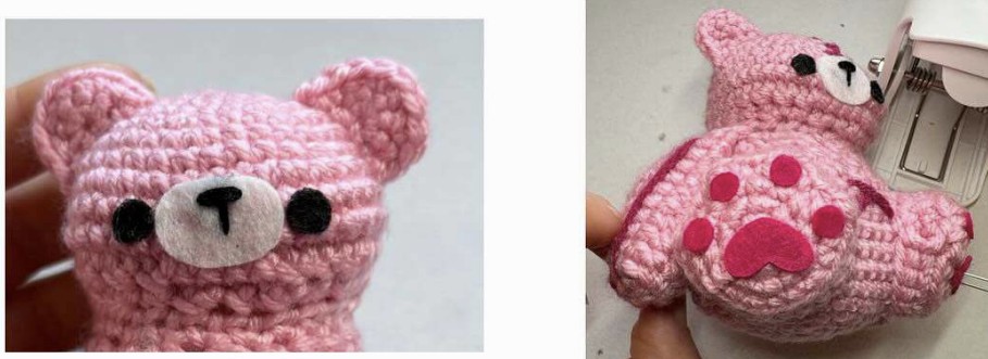 feutre rigide en blanc et noir (ou une couleur plus foncée que votre fil. Pour l’ours rose, j’ai utilisé du feutre noir pour les yeux et un rose foncé pour les pattes)