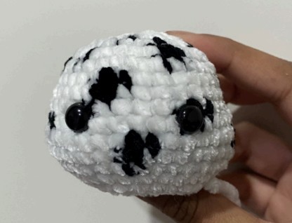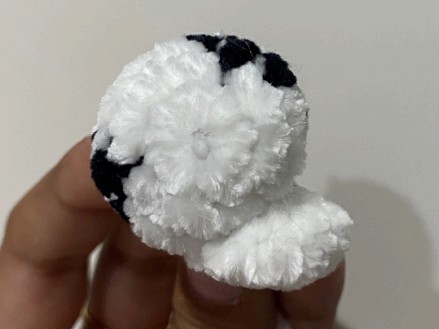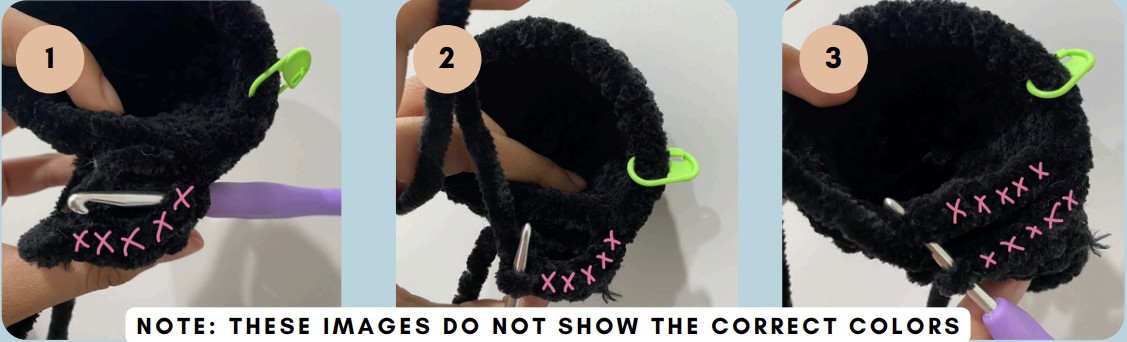 – pour ce faire, utiliser votre aiguille pour passer à travers les deux boucles de la tête et seulement la boucle avant du corps, et les coudre ensemble.
