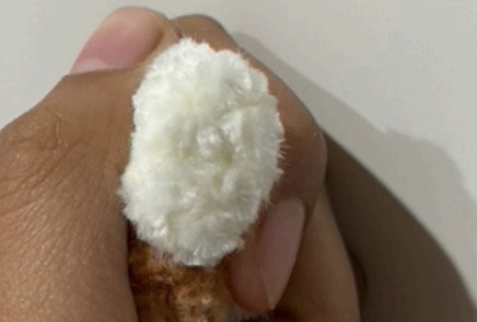 Maintenant, utiliser la queue laissée sur les bras pour fermer le trou laissé entre le corps et l’arrière des bras