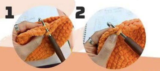 Tour 1 : ml 10, en commençant dans la deuxième m (image 1), 6ms, 2augm, 3ms dans la même m, 2augm, 6ms (23m au total)