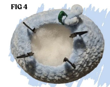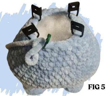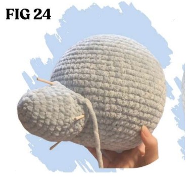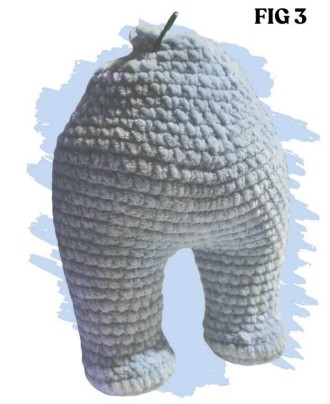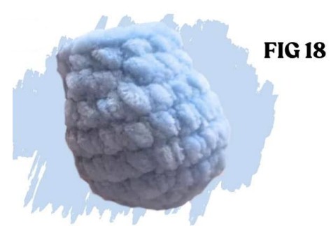 Tour 35 : (5ms, dim) répéter 4 fois (24 mailles) – Terminer le rembourrage pour le moment. FIG 3