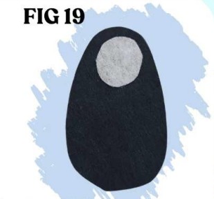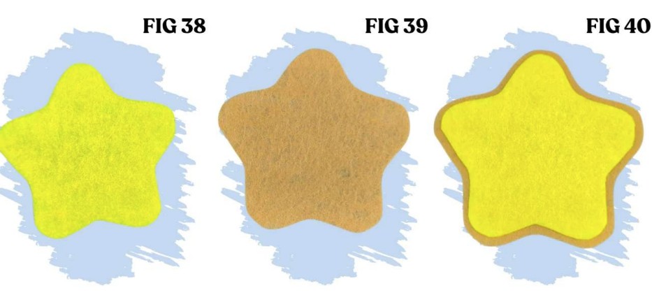 Répéter cela dans du feutre orange, mais légèrement plus grand que la précédente étoile, créant une sorte de « contour » lorsque l’étoile jaune est placée dessus. FIG 39