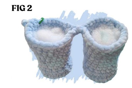 Remplir les deux jambes. S’assurer que les orteils sont bien rembourrés..