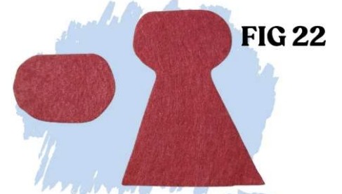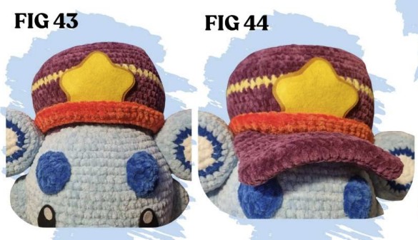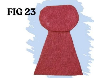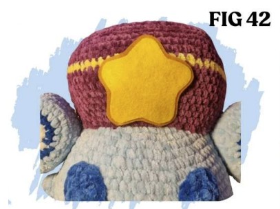 FIG 42 – Coller ou coudre l’étoile sur l’avant du chapeau, de façon à ce que sa pointe supérieure dépasse la ligne du chapeau.