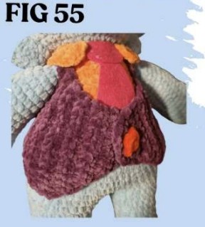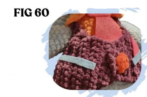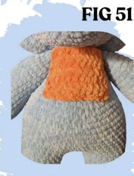Ensuite, coudre la queue au centre arrière du corps, entre les T19 et T21.