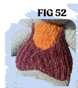 S’assurer de ms dans les mailles qui joignent la ml aux jambes, pour obtenir un total de 52 mailles (sinon vous n’aurez que 50ms).