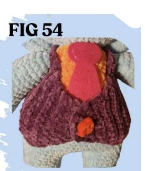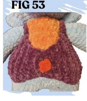 Mettre le gilet sur Ursa, croiser les deux côtés l’un sur l’autre et, en utilisant les queues de fil de départ restantes, les coudre en place.