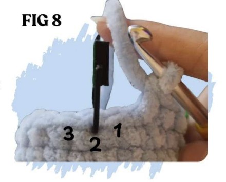 En commençant dans la maille après le 4e marqueur, ms jusqu’à la fin du tour. (24 mailles). FIG 6