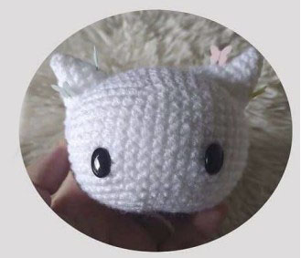 Avec du fil ou de la laine noir, broder les 3 moustaches de chaque côté à partir d’environ le rang 13.