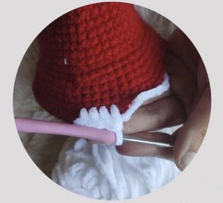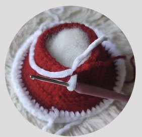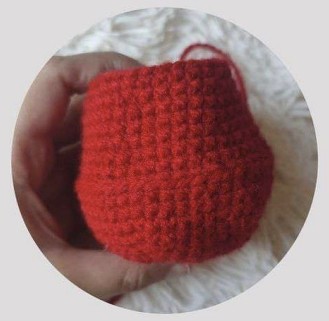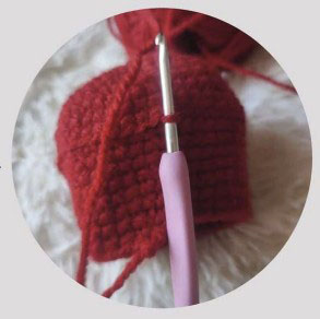 Avec le reste de fil rouge laissé sur le corps, coudre la tête.