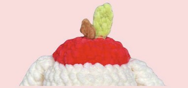Passer les fils du chapeau pomme par le centre et les nouer à l’intérieur pour fixer la tige et la feuille.