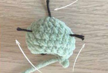 Nous allons utiliser 2 petits morceaux de fil marqueur au tour suivant pour placer les yeux (voir photo)