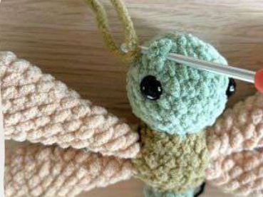 Dans les 2 prochains tours, nous allons crocheter les ailes dans les tours en les pliant. Ajustez la position si nécessaire !