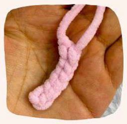 Arrêter le fil, en laissant une longue queue pour la couture. Plier cette pièce comme montré sur la photo et ne pas la rembourrer.