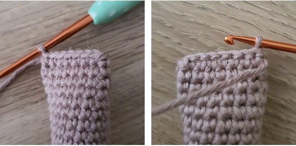 Fermez-la en travaillant des ms à travers les deux côtés de la jambe d’une extrémité à l’autre, en commençant dans la maille à côté de celle que vous venez de faire. [8]