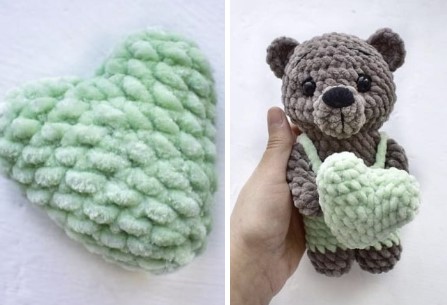 Cet ours en peluche amigurumi en fil peluche est un cadeau amusant fait main pour la Saint-Valentin, la fête des mères ou pour vous-même. Ce modèle d’amigurumi gratuit comprend des instructions détaillées dans le modèle écrit et un tutoriel photo étape par étape pour vous apprendre à crocheter un ours en peluche et un cœur. La taille de votre jouet fini dépend de votre tension et de vos matériaux.