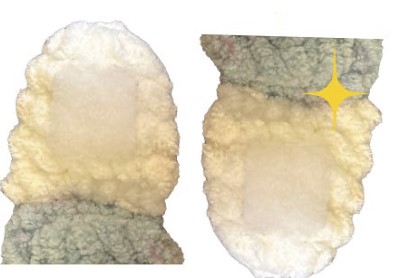 Vous pouvez coudre le velcro ou le coller à chaud. J’ai choisi de le coller à chaud.
