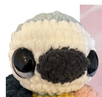 Le jouet au crochet est réalisé avec un fil chenille, et il est recommandé d’utiliser un crochet de 4,5 mm. Le produit test comprend quelques petits détails décoratifs que je vais vous expliquer brièvement. En fait, la plupart des pièces sont identiques, mais on remarque une petite différence au niveau des yeux du jouet : on a donné l’impression que le paresseux est un peu endormi. C’est très facile à faire : il suffit d’ajouter des lignes superposées avec du fil juste au-dessus des yeux. En ajoutant plusieurs fils, cela forme une sorte de paupière et donne à notre paresseux un regard somnolent. C’est vraiment trop mignon 🙂 Allez, découvrons les détails du modèle!
