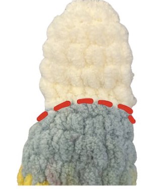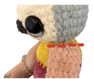 Vos augmentations du tour 21 formeront votre ventre. Assurez-vous qu’elles soient alignées avec le devant de votre visage. Ajustez si nécessaire.
