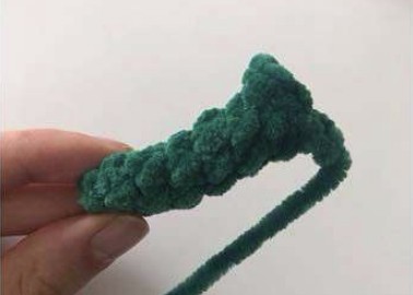 Couper le fil, Arrêter le fil et laisser une longue queue pour les détails et la couture. Coudre les ailes sur le dos de la tête du dragon.