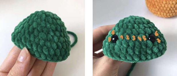 Coudre la queue sur le dos de la citrouille.