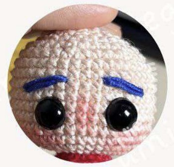 Broder les sourcils entre les tours 24 et 25 sur une longueur de 4ms.
