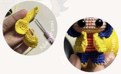 Nous allons faire la deuxième jambe de la même manière que la première, mais celle-ci ne sera pas coupée, nous continuerons à crocheter. Puis joindre à la première jambe avec 1ms dans ms 11.
