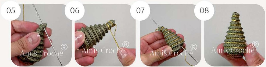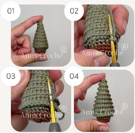 Le mois de novembre approche et je vais commencer à partager avec vous des modèles d’amigurumis de Noël. Aujourd’hui, je vais d’abord partager un sapin de Noël. L’année dernière, j’avais déjà partagé un modèle de sapin, mais celui d’aujourd’hui est parfaitement adapté comme décoration de sac ou porte-clés. De plus, si vous réalisez le jouet avec les types de fils recommandés, il aura un aspect très scintillant. Nous allons crocheter le sapin de Noël en deux parties.