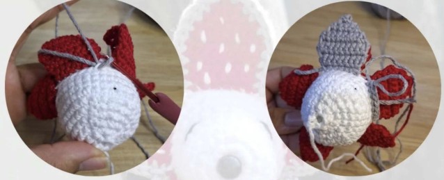 Coudre les oreilles sur les côtés entre les tours 13 et 15.