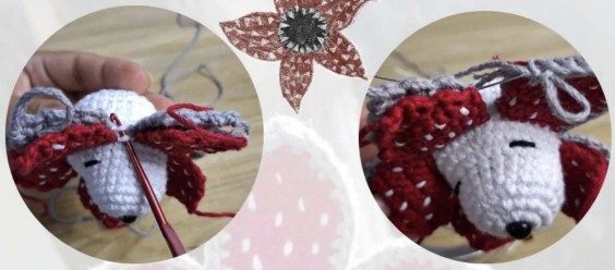 Au tour 12, crocheter le même modèle que les pétales rouges x5.