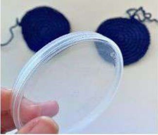 Découper un cercle de plastique semi-rigide (comme un couvercle de margarine) correspondant au diamètre intérieur du cercle en crochet que vous venez de faire.